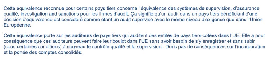 On June 13, 2013, Jersey, Guernsey and the Isle of Man, as well as many others more or less exotic jurisdictions, were granted “equivalence” when it came to the quality of auditing services.
